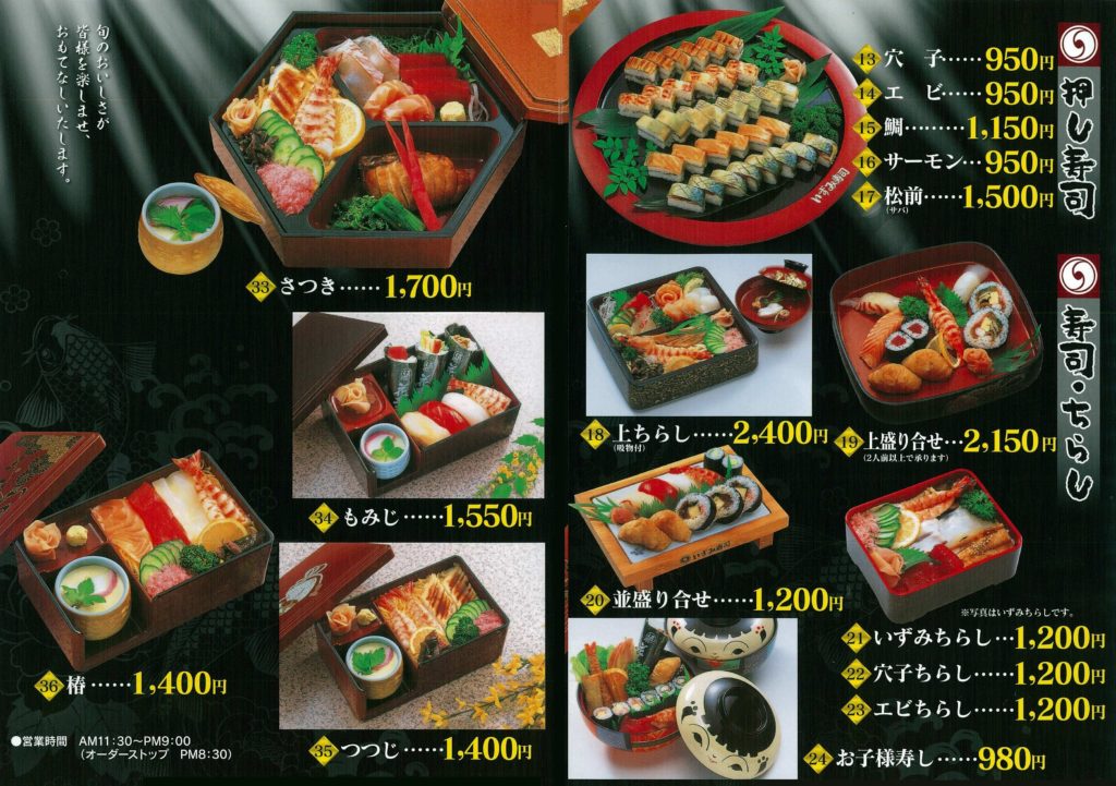 四季折々の幸を吟味し、厳選し「いずみ寿司」が真心こめてお届けします。