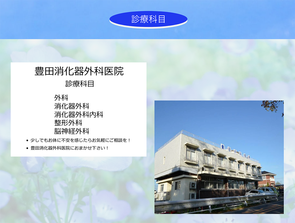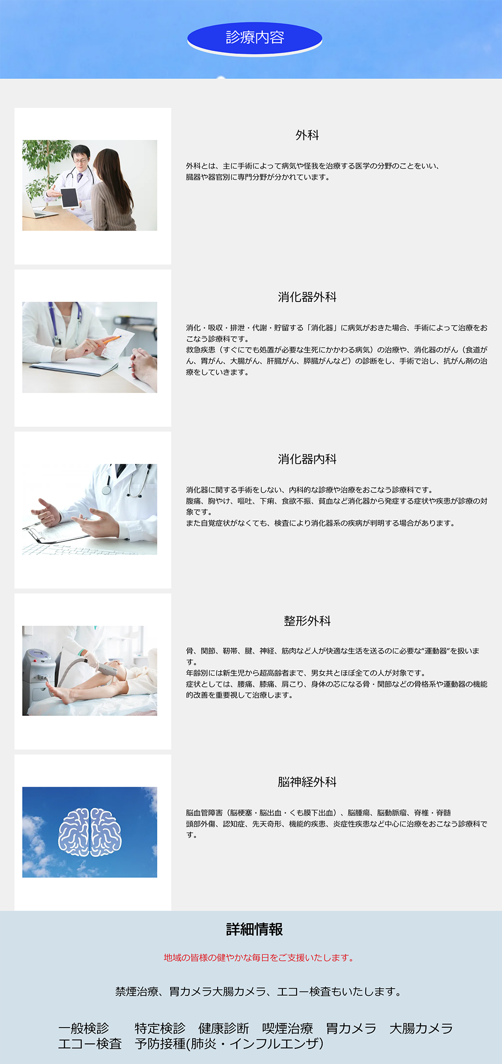 外科、消化器外科、消化器内科、整形外科、脳神経外科