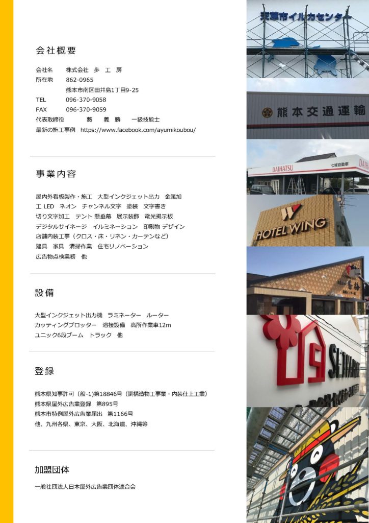 歩工房では、1級技能士や屋外広告士など有資格者や経験豊富な技術者が、日々「自分が貰ってうれしい、綺麗で丈夫なサイン」を作ることを目標に、お客様の立場に立って、企画・デザイン・製作から施工までを一貫して行っています。