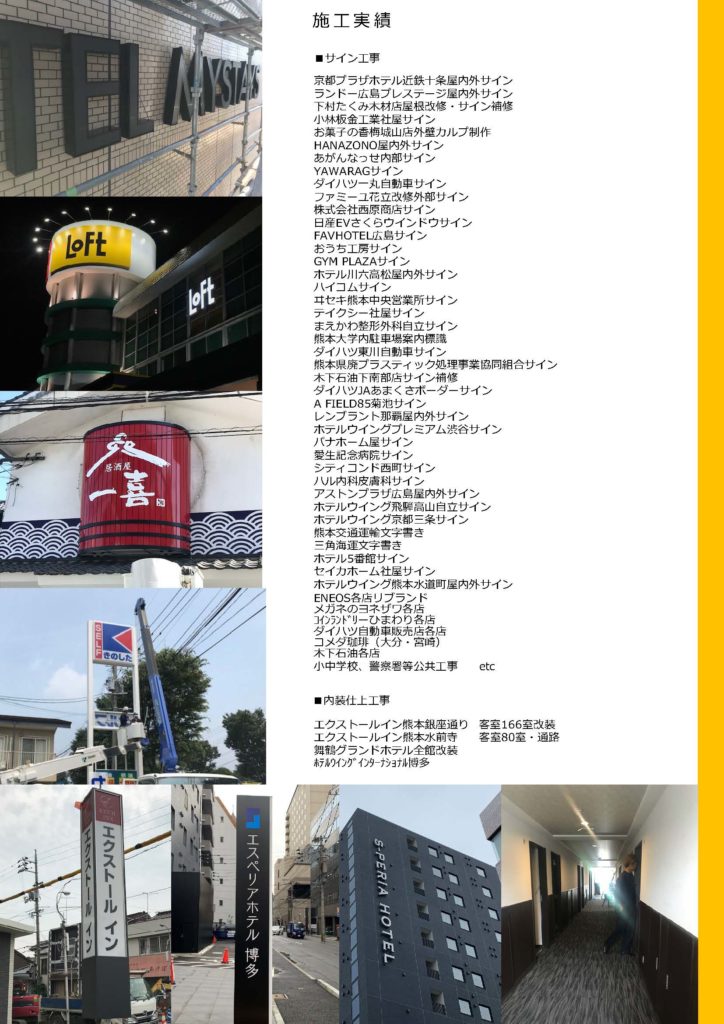 大きなものから小さなものまで、あらゆるサインや付随工事、内装工事への対応が可能です。